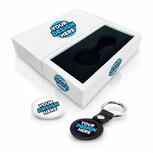 The AirTag & Key Tag Customizable Gift Box Premium Set combines style and functionality in one complete package. Each set features a sleek key tag and AirTag holder, packaged in a customizable gift box that can be personalized for a unique and memorable presentation.