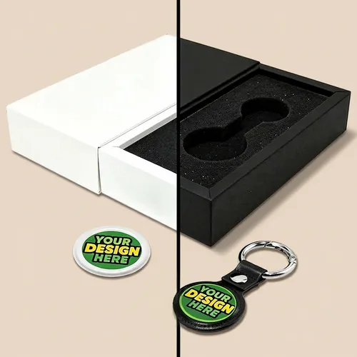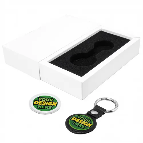 Each set includes a custom-imprinted AirTag paired with a matching imprinted leatherette case for a unified brand look. A premium unprinted gift box is provided with every purchase to ensure a high-quality presentation upon arrival. Additionally, a comprehensive user manual is included in every package to facilitate a quick and easy setup process.