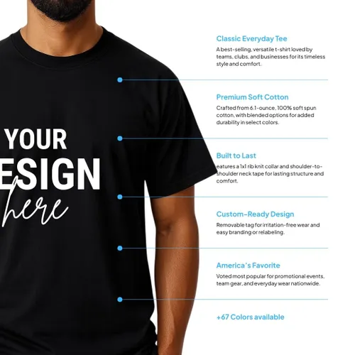 Crafted from 100% US cotton, this high-quality t-shirt offers superior comfort and durability. The fabric composition varies across different colors, with Ash featuring a 99/1 cotton/poly blend, Sport Grey and various antique shades incorporating a 90/10 blend, and select heather and neon colors constructed with a balanced 50/50 cotton/poly mix. This ensures a soft feel while maintaining strength and longevity, making it a perfect everyday essential.