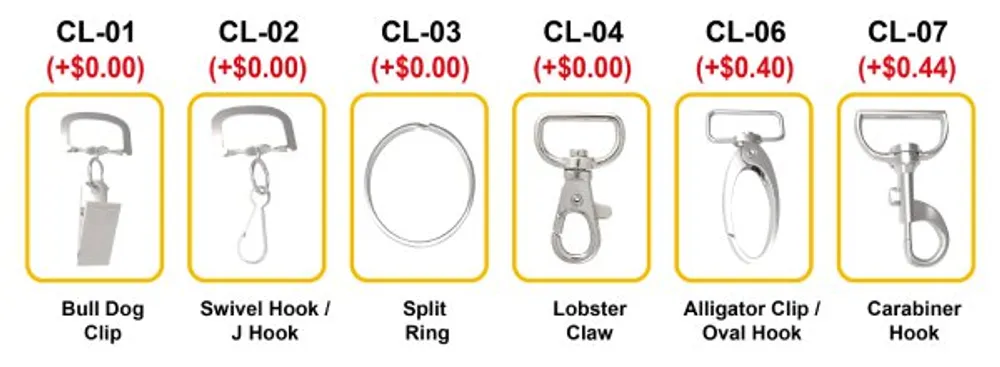 Additional Options | Add Another Lanyard Color : $50(P) Add Individual Bag: $0.08/ each (P) Second clip attachment on lanyards: $0.40/each(P) (CL-01 to CL-05) Second clip attachment on lanyards: $0.80/each(P) (CL-06 to CL-09) Digital Proof: $20(P)(Required) Add metal crimp - $0.10(P)/each Imprint area of ID reel is around 20mm in diameter. View Printable Size Chart: Click Here |