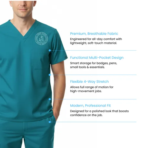 The Wink® Unisex WorkFlex Chest Pocket V-Neck Top is a versatile, durable scrub top designed for medical professionals and anyone needing reliable workwear. Crafted from a comfortable and long-lasting 65% polyester / 35% cotton blend with mechanical stretch, it offers flexibility and ease of movement during long shifts