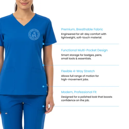 The Wink® Women’s WorkFlex V-Neck Top is a professional-grade scrub top